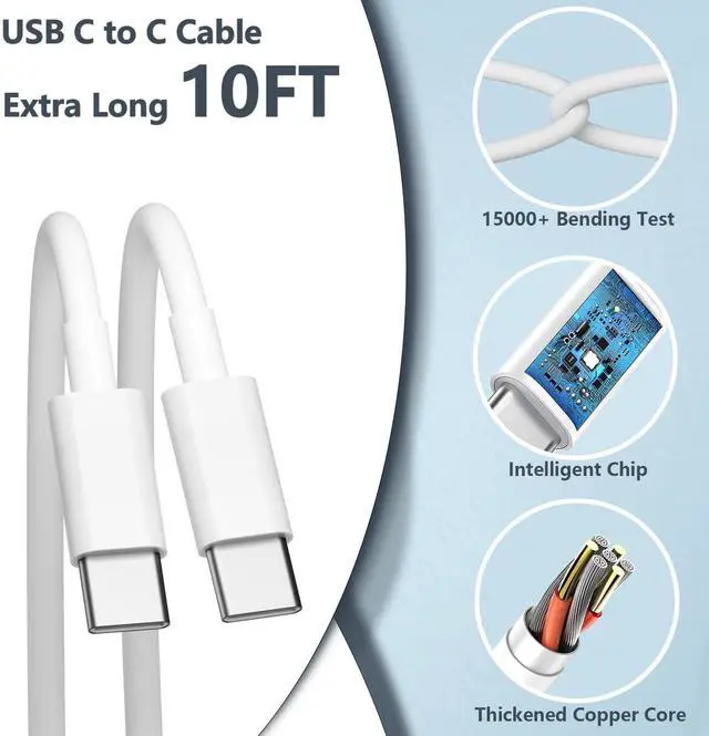 Charger Compatibility: -for iPhone 17 Pro Max-for iPhone 17 Pro-for iPhone 17 Plus-for iPhone Air-for iPhone 17-for iPhone 16 Pro Max-for iPhone 16 Pro-for iPhone 16 Plus-for iPhone 16-for iPhone 15 Pro Max-for iPhone 15 Pro-for iPhone 15 Plus-for iPhone 15-for iPad mini 7th A17 Pro-for iPad 11-inch A16-for iPad Pro 13-inch (M4), for iPad Pro 13-inch (M2) -for iPad Pro 11-inch (M4), for iPad Pro 11-inch (M2) -for iPad Pro 12.9 -inch 6th 5th 4th 3rd generation-for iPad Pro 11-inch 4th 3rd 2nd 1st generation-for iPad Air 6th 5th 4th generation-for iPad 10th generation-for iPad mini 6th generation-Other devices that support USB TypeC-port chargingWhat You Get-1-Pack USB C Port Chagrer Plug-1-Pack 10Feet USB C to C full speed charging cable