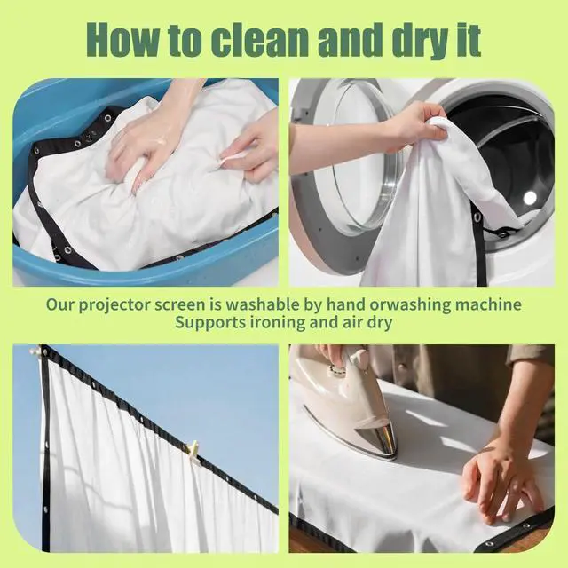 Thickened Fabric for Superior Viewing: Our outdoor projection screen features a white movie screen sheet made from high-quality fabric. The enhanced thickness ensures a smooth surface and optimal projection clarity, bringing your movies to life in stunning detail,It uses washable materials and can be washed either by hand or in a washing machine.