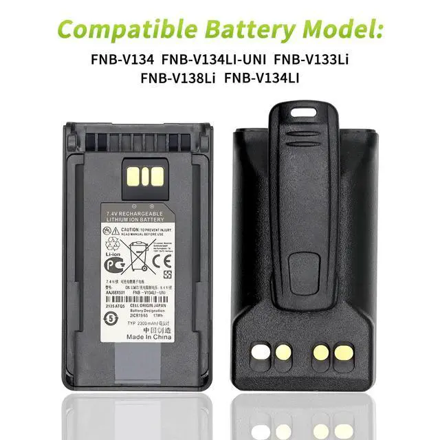 Package included: 12 pcs x fnb-v134/fnb-v133li/fnb-v134li-uni battery and 12 pcs x belt clip (NI-MH Battery) ^^ A new and perfect fnb-v134 battery replacement for your fnb-v134 radios, tested under strict QC standards to ensure it lasts over 800 charge cycles. built-in microchip to prevent overcharging, overdischarging, short-circuiting, and overheating.