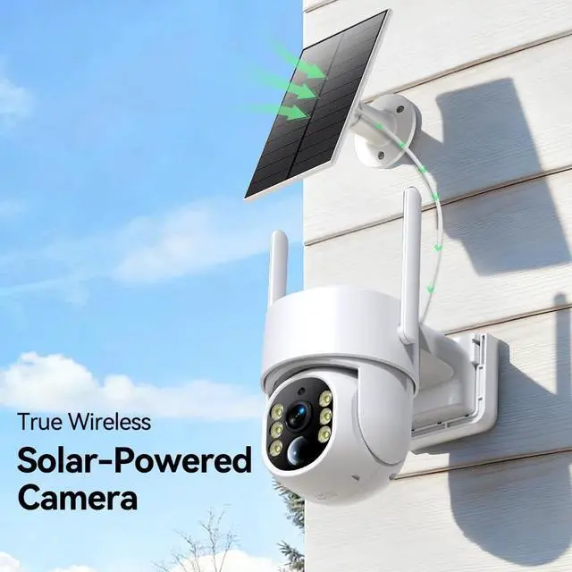 Wireless Design & Solar Power: No wires or frequent charging needed! Cameras for home security external solar panel ensures continuous outdoor power, keeping the camera powered indefinitely. Even during storms or prolonged cloudy periods, the backup battery guarantees round-the-clock protection. ^^