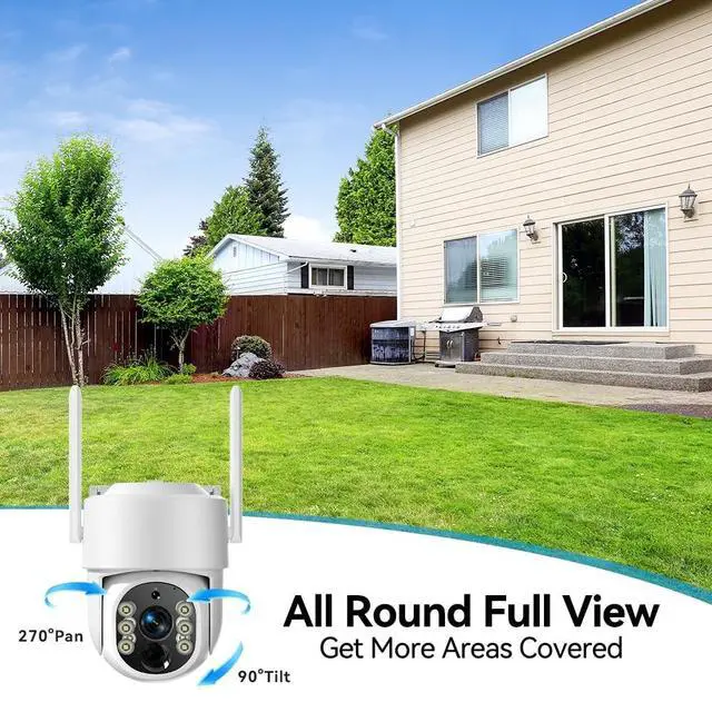 Full Coverage & IP65 Waterproof: This solar powered security camera outdoor offers 270 horizontal and 90vertical rotation, effortlessly covering your entire home and yard. Its IP65 waterproof rating ensures stable operation during heavy rain, snow, and extreme temperatures, adapting to any outdoor scenes. ^^