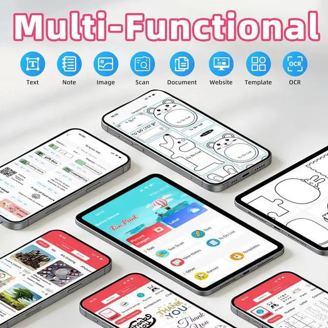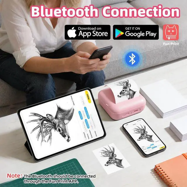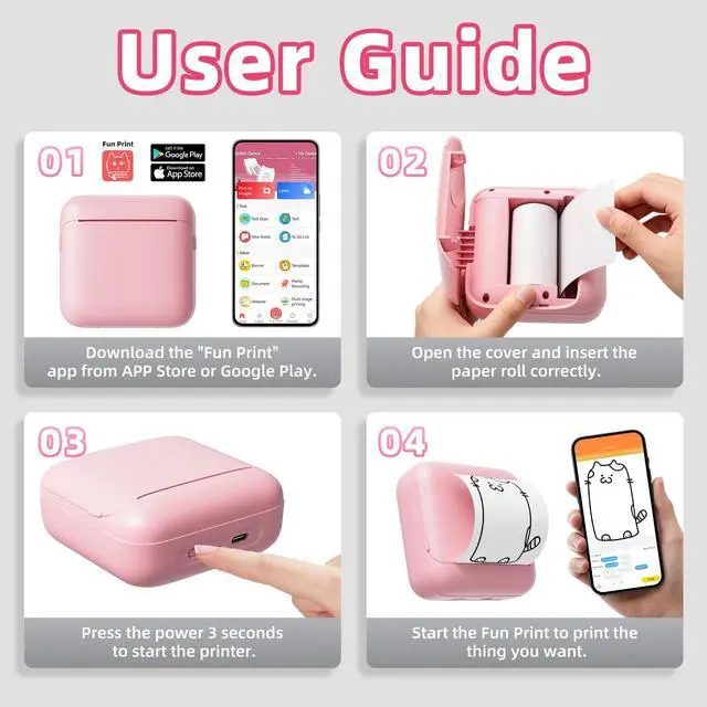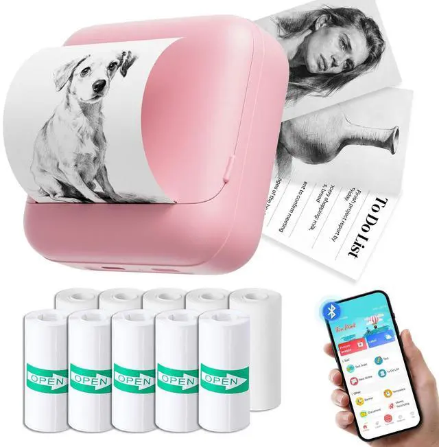 ^^ Interchangeable Paper Rolls The package includes 5 rolls of 53mm thermal paper and 5 rolls of 53mm adhesive sticker paper. Both paper types are standard 53mm in width and can be easily cut to your desired length, offering versatile support for a wide range of creative and practical applications. ^^ Smart App Control Simply scan the QR code in the manual to download the dedicated app for easy phone pairing. Compatible with both Android and iOS, the printer supports multi-device connectivityperfect for sharing wireless printing with friends and family. ^^ Ideal Gift This set includes two types of thermal paper rolls: a 53mm thermal paper roll and a 53mm wide adhesive sticker paper roll5 rolls of each type included. Equipped with a built-in precision serrated cutter for clean, easy tearing. Combining a compact design with practical functionality, this mini printer is easy to operate and highly portable. It serves as an ideal gift for students, teachers, journaling enthusiasts, and creative professionalsperfect for occasions such as birthdays, or back-to-school season.