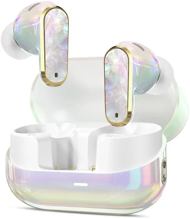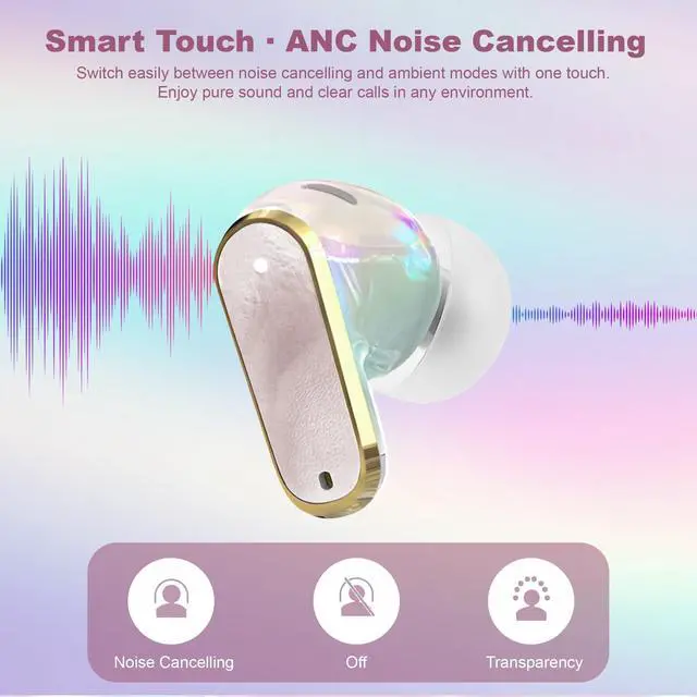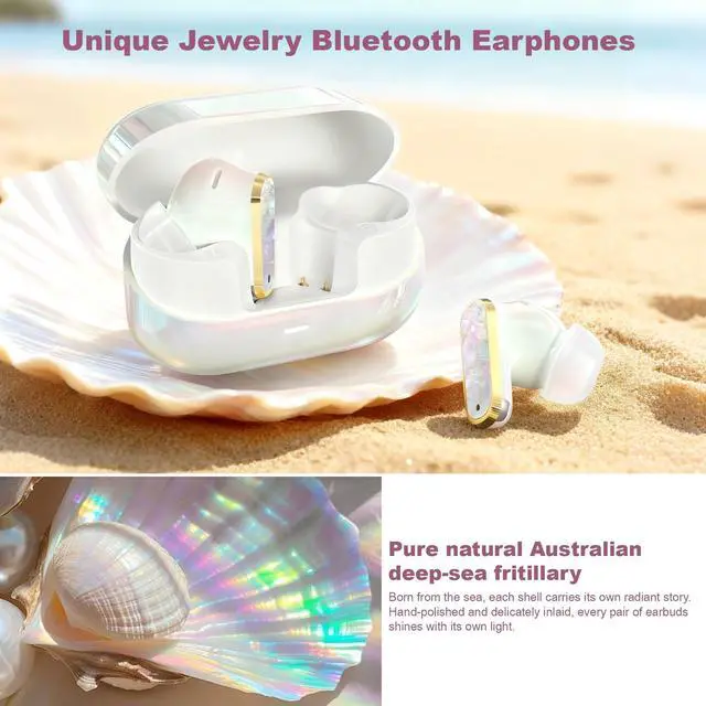 Earring Earbuds Wireless Bluetooth & Lightweight Luxury Design Inspired by the refined beauty of mother-of-pearl jewelry seen in luxury fashion houses, these earring-style wireless earbuds feature a luminous laser-finish shell with natural pearl-like iridescence. Each pair is individually polished, making every set subtly unique. Elegant, lightweight, and jewelry-inspired, they blend premium craftsmanship with modern audioperfect for women who appreciate understated, everyday luxury. ^^ Active Noise Cancellation with 3 Adjustable ModesEnjoy immersive sound with ANC earbuds that let you switch freely between active noise cancellation, transparency mode, or off mode.