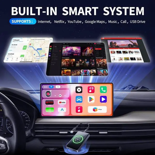 ^^ Built-in Smart System: Equipped with an efficient built-in smart system that supports internet connectivity, offering video playback apps like Netflix, YouTube, TikTok, as well as Google Maps navigation, music streaming, and TF card expansion, enhancing in-car entertainment and convenience. ience.