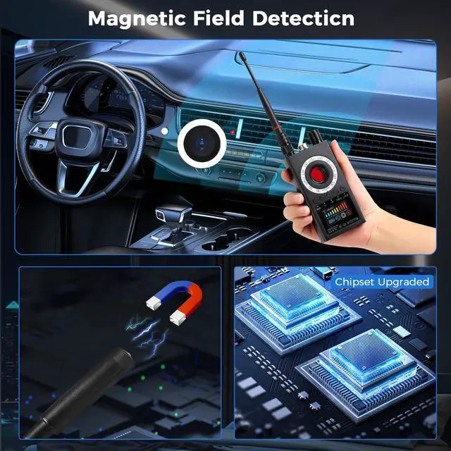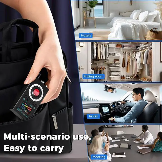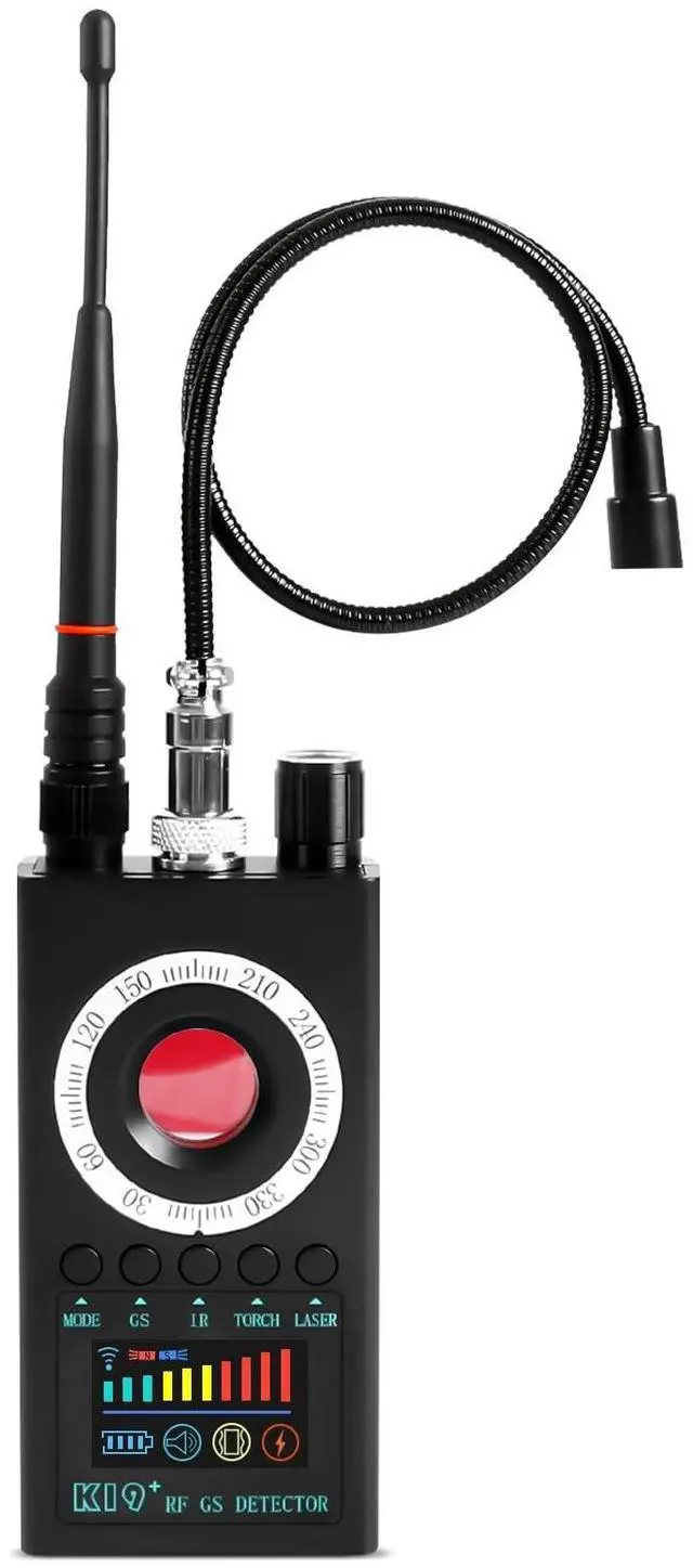 Advanced threat detection system K19s advanced technology detects wireless signals (from bugs), GPS trackers (via strong magnetism), and infrared cameras keeping your private spaces (home, hotel, car) safe from surveillance. ^^ Flexible alarm mode Switch between vibration (quiet mode for libraries, meetings) and sound (loud mode for quick notifications). Adapt to any environment effortlessly. ^^ Low-light environment camera detection Thanks to infrared and night vision enhancement, the detector spots hidden cameras in dark corners crucial for thorough privacy checks in poorly lit areas. ^^ Compact and portable design The single units dimensions ( 4.22.