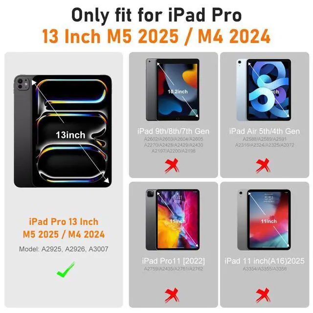 CompatibilitySpecially designed case for iPad Pro 13 Inch M5 2025 / M4 2024, Model: A2925, A2926, A3007.