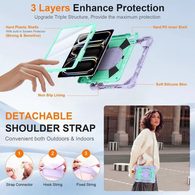 Shockproof and Scratch-Resistant: Ubearkk Case for iPad Pro 13 Inch M5 2025 / M4 2024 - adopts an three-in-one structure; made of high-quality PC and shock-absorbing silicone material, the mili-grade shockproof case can effectively prevent accidental drops, bumps, slips, and scratches. This tablet case for iPad Pro 13 Inch M5 2025 / M4 2024 comes with a built-in screen protector ^^