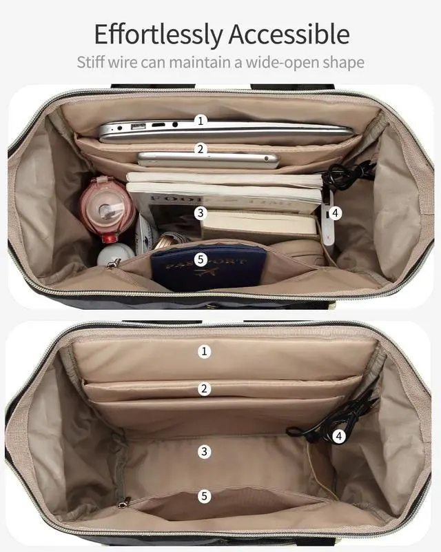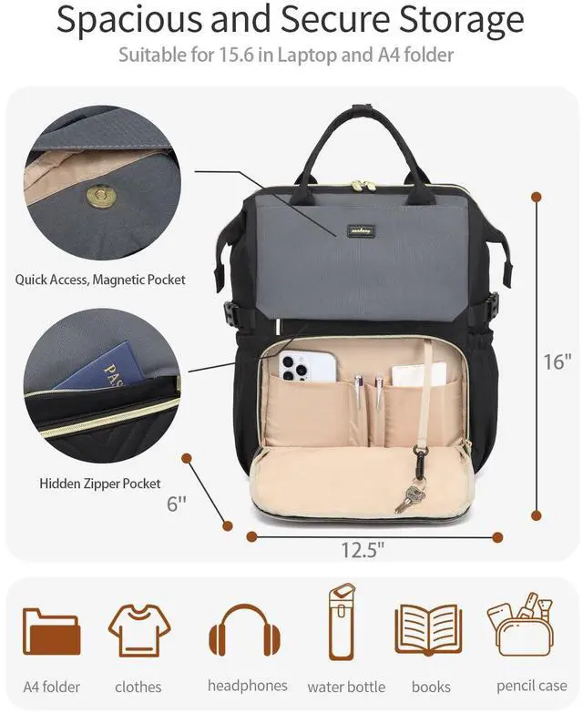 Wide-Mouth Access: Practical Backpack with 5 compartments and 15 pockets help keep items organized, from binders and books to smaller essentials like pens and keys ^^ Suitable for