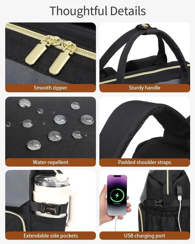 Massive Watter Bottle: The large side pouch pockets designed with buckle to hold up the 40oz water bottle. Ideal for teacher, nurses and those always on the go. Stay hydrated on commuting or working days! ^^ Keep Devices Powered On the