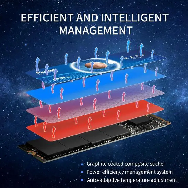 FX550 500GB M. 2 SSD supports TRIM & SMART, AES-256 data encryption, advanced wear leveling, and reserved space technology to ensure the security and reliability of data. ^^ [EFFICIENT INTELLIGENT MANAGEMENT] The FX550 500GB M2 SSD is equipped with a graphite-coated composite sticker to provide effective heat dissipation control for high-performance NVMe SSD. The FX550 500GB NVMe SSD is also equipped with an adaptive temperature adjustment and power efficiency management, which intelligently adjusts the M2 SSD heating temperature and power consumption control, not only reducing the burden on the device, but also extending the battery life of devices such as laptop.