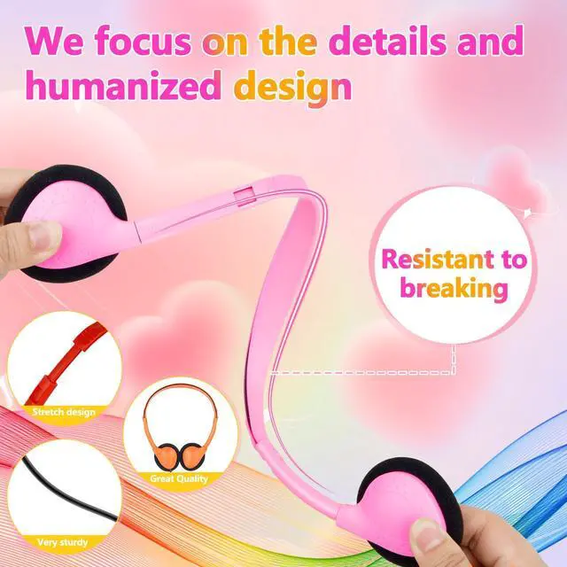 Upgraded USB C Headphones for Kids Our kids headphones are compatible for ipads, laptops, computers, mobile devices, tablets with type c audio jack. no need usb converter, hassle-free plug-and-play functionality. Whether at home, at school, or on the go, kids headphones is a great companion ^^ Wired Boys Girls HeadphonesOur head phones feature an ergonomic design and adjustable headband for a perfect fit on the head. Childrens headphones are flexible enough to release pressure on the head and come with super soft and breathable ear cushions to ensure your child is comfortable for long term wear ^^ Stereo SoundThe toddler headphones perfect for your kids studies, music and entertainment.