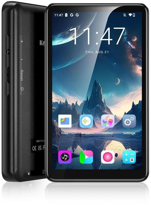 Experience premium portable audio with this sleek MP3 player from KeenPlus. Featuring a stunning edge-to-edge display with vibrant visuals and an intuitive user interface, this device brings your music to life. The elegant black design with glossy finish exudes sophistication while remaining comfortable to hold. Navigate your music collection effortlessly using the responsive touch controls and enjoy your favorite tracks through multiple audio output options. The player supports various music formats and offers ample storage space for your entire music library. The crisp display shows album artwork, playlists, and playback controls in stunning detail, while the side-mounted physical buttons provide quick access to essential functions.