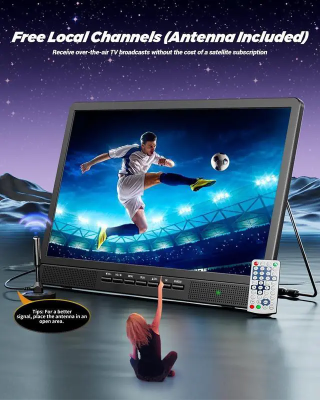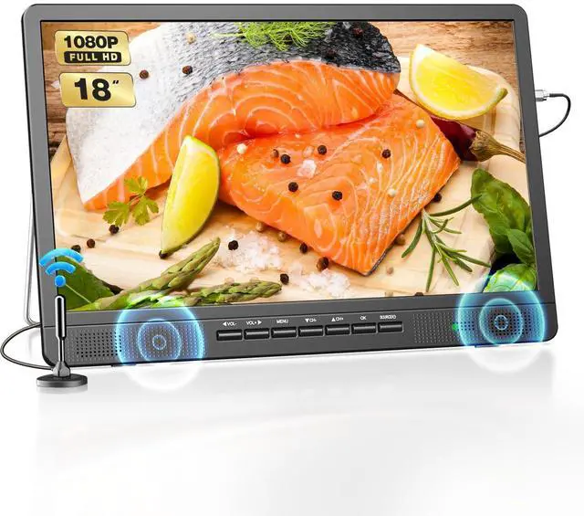 HD Portable TV With Antenna: NORTHING 18" HD TV is equipped with an antenna tuner that supports the reception of digital signals. Full HD 1080P display resolution not only provides a clear and lifelike TV program experience, but also serves as a monitor, providing enjoyable visual performance and a comfortable viewing experience whether you are watching movies, playing games or doing office work ^^ Multiple