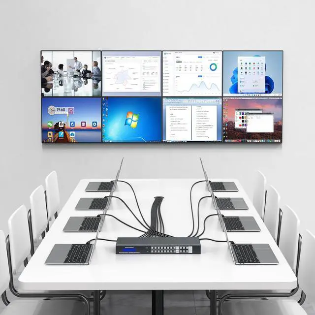 [ ] Yinker 4K HDMI Matrix 8x8 connects 8 HDMI Input Sources and distributes them into 8 HDMI Output Displays simultaneously or individually. It can used as a switcher or a splitter without plugging in and out the cables. ^^ [. ] This Rack Mount Matrix has the 3.5 mm Audio Extractor. Please notice that 3.5 mm Audio Output only work at Output Port 8. Packed with the 2 rack mount ears, allows to mount it on an 1U 19'' inch Rack Cabinet. ^^ [ ] Yinker 8 in 8 out HDMI Matrix supports max to 4K@30Hz, downscale to 2K@30Hz, 1080P@60Hz, 3D, 36 bit color depth, HDMI 1.4B, HDCP 1.2, PCM/DSD/Dolby/TrueHD/DTS-HD.