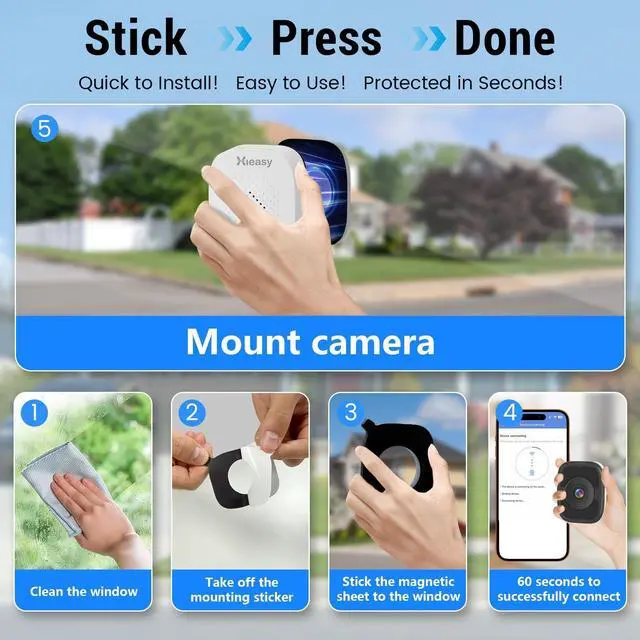 Magnetic Mounting Design & Easy Installation: Featuring an innovative magnetic fixation system, it can be quickly installed in under 15 seconds without damaging the window frame; It supports both Bluetooth and Wi-Fi connectivity, allowing for easy pairing with your mobile phone ^^ 2.5K Ultra HD Picture Quality &