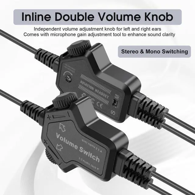 Pdflie Passive Noise Cancelling Pilot Headphones for Flight School Student, Dual GA plug, PNR General Aviation Headsets for Pilots, Mono and Stereo, with MP3 Input