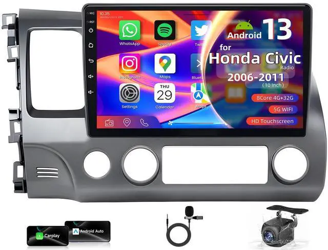 Car Stereo: car touch screen radio Designed for Honda Civic 2006 2007 2008 2009 2010 2011 featuring Android 13OS, 10" IPS HD touchscreen (1280800). 8CORE 4GB RAM + 32GB ROM for smooth operation, and Includes a backup camera and microphone. honda civic 2008 2009 2010 2011, 2006 2007 2008 2009 2010 2011 honda civic radio. ^^ 2006 honda civic radio Wireless/Wired CarPlay & Android Auto with