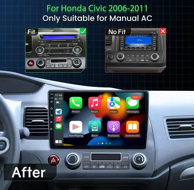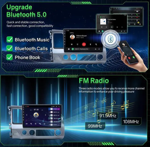WiFi Connectivity: 2009 honda civic radio Pre-installed Google Maps with real-time traffic updates (WiFi required) and offline navigation. car play radio Download apps like YouTube/TikTok with 32GB storage for entertainment. honda civic 2008 accessories. ^^ Bluetooth 5.0 & FM& DSP &Bluetooth
