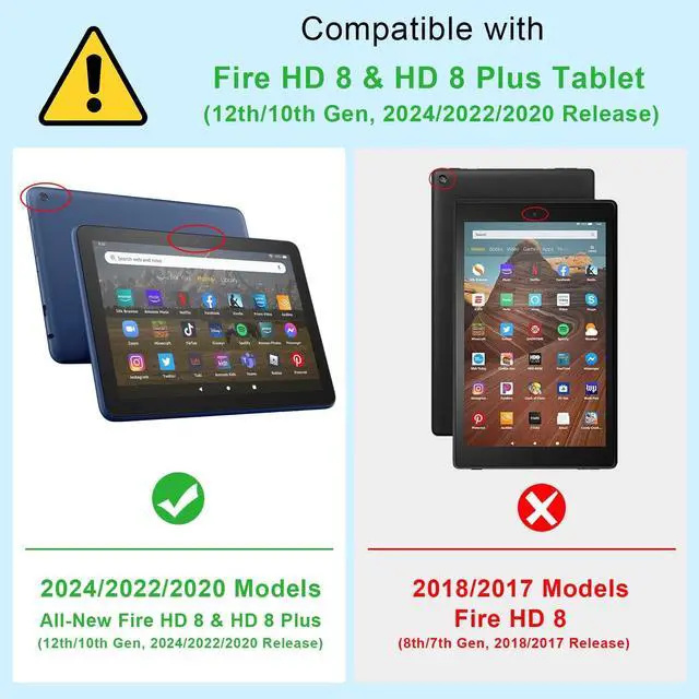 Perfect fit: Tailor-made for 8" All-New Kindle Fire HD 8 & 8 Plus(12th Gen, 2024/2022 Release)/(10th Gen, 2020 Release)Only. NOT fit other Kindle devices, without hindering normal device usage. It's truly the ideal companion for your Fire HD 8 & 8 Plus ^^ 360-Degree