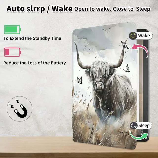 Automatic Sleep/Wake Function: Our Kindle fire 8 tablet 2022 case features an intelligent automatic sleep/wake function. When you close the cover, the tablet enters sleep mode automatically to conserve battery life. Opening the cover immediately wakes the device, providing you with an instant user experience ^^ Original Design with