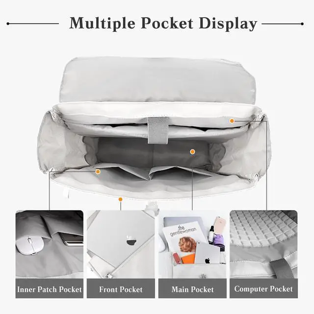 ^^ Excellent Design: Shoulder pad is composed of sponge and 3D honeycomb hollow net, which is conducive to the air taking away heat, has a good moisture absorption and perspiration effect, and keeps the shoulders dry and comfortable. With a luggage strap on the back, backpack can be fixed to the suitcase, which is very convenient to use when traveling.