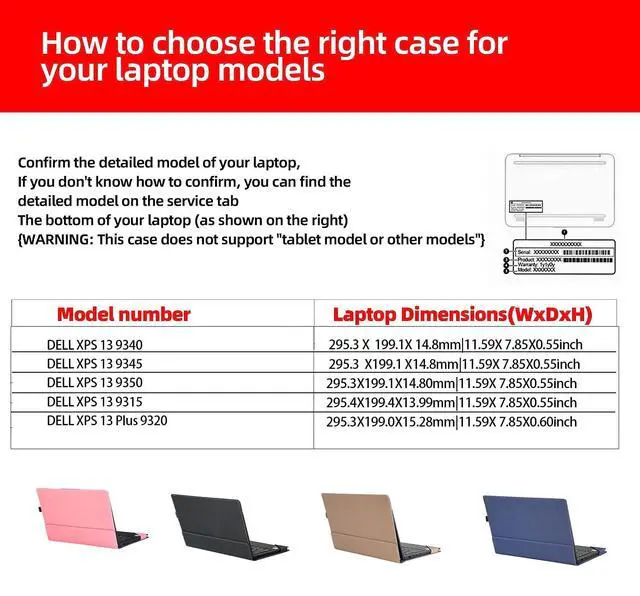 Compatible models: for DELL XPS 13 9350 9345 9340 9315 XPS 13 Plus 9320 All-Inclusive 13.4" 2-in-1 PU Leather Inner Pocket Cover, laptop