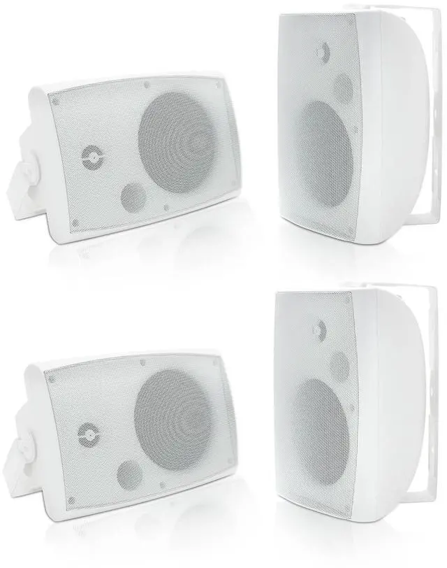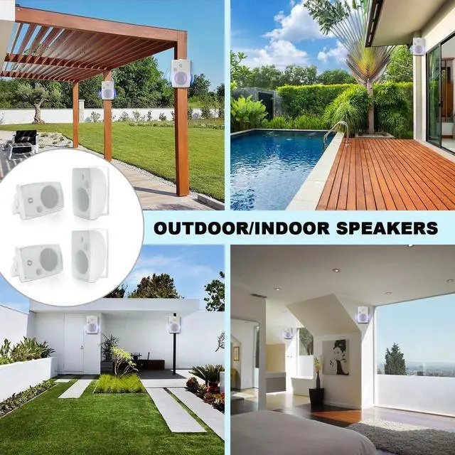 Full-Range SpeakersThe high powered full range indoor outdoor speakers wired waterproof has a maximum power output of 800 watt (200 Watt Each) peak power can filling open spaces with complete audio coverage. ^^ Waterproof&Weather ResistantOur Outdoor speakers are made with heavy-duty ABS construction and are IP66 grade waterproof making it safe to use in rainy day, snowy day sunny days and other extreme weather. Excellent for use on Patio, Yard, Poolside, Livingroom. ^^ Bluetooth Speaker System & Multifunction AmplifierFour passive speakers with an 4 channel amplifier wired for connection deliver high-quality sound enjoyment.