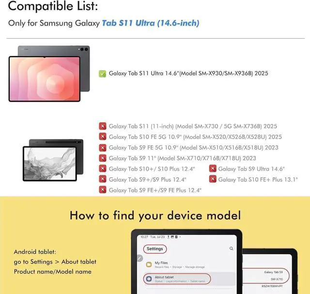 Compatible Models: This case is compatible with Samsung Galaxy S11 Ultra 14.6" (SM-X930/X936B) 2025 Release, It will NOT work for any other Samsung model device ^^