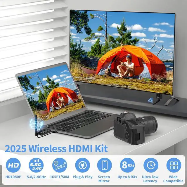 Wireless HDMI Transmitter and Receiver is designed with newly upgraded LED display, connection status, signal status, output status, power status can be seen at a glance, all-round upgraded products, all-round to meet the needs of our work and life more leisurely and easy. Wireless HDMI Extender supports screen copy and screen expansion, allowing you to project the content from your laptop, camera and cable set-top box to HDTV, projector and monitor, the duplication mode synchronizes the screen in real time, and the expansion mode displays a different screen for a wider range of operations.