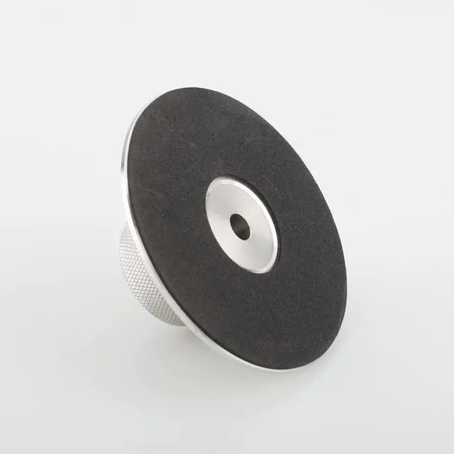 Tertullus premium record weight in Stainless steel hi-quality machined + padded bottomimproves sound quality of turntable playback for audiophiles. ^^ This is a new in box polished Stainless steel Record Stabilizer. This unit is approximately 390 grams of polished Stainless Steel. Carefully designed to enhance both the listening and visual experience of vinyl albums new and old. This unit, when placed on top of the album over the center spindle, adds mass to the platter, secures the album from slipage while dampening vibrations. ^^ This Record Stabilizer is one of the least expensive and effective tweaks that a music lover can make to the sound and the visual experience of playing vinyl music.