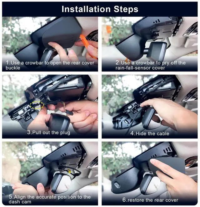 ^^ What you getMangoal OEM Look 4K Dashcam x1, Rain-Fall Sensor Plug Adapter x1, Rear Cam x1, Rear Cam Cable x1, 128G MircoSD Card x1, User Manual x1, Crowbar x1, Strap x2, worry-free 12-month warranty