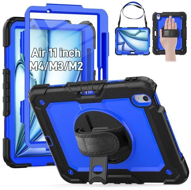 Compatible with iPad Air 11 inch Case M4 / M3 / M2 (2026 / 2025 / 2024) Model Number iPad Case A3459, A3460, A3463, A3266, A3267, A3270, A2902, A2903, A2904. NO Pencil * Easy to install and you can find INSTALLATION VIDEO on this page. ^^ Shockproof & Screen Protector -- This iPad Air11 Case designed with durable anti shock material, built-in screen protector (2 covers to choose, one with built-in screen protector and one without), strong protection and keep your ipad air 11 safe from shock, drop, scratches in daily use.