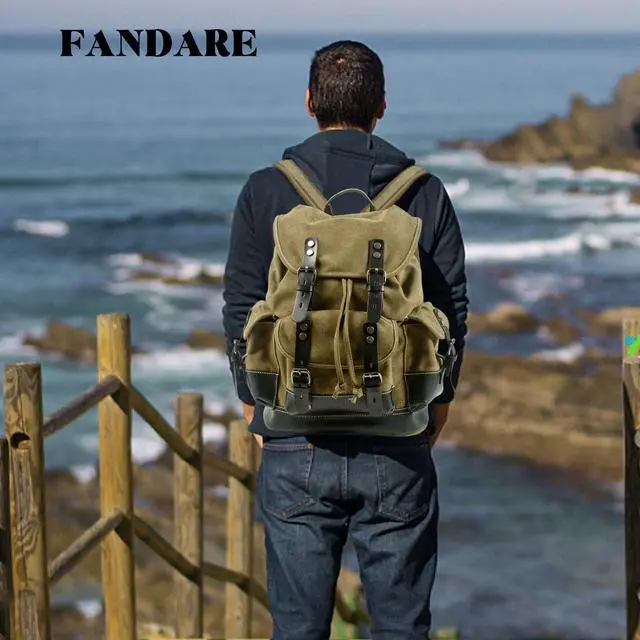 FANDARE Vintage Backpack for Women & Men 15.6 Inch Laptop Backpack Large Capacity Canvas College Bookbag Travel Hiking Work Commuter Daypack Military Green C