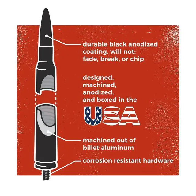 No more worrying about your OEM Antenna breaking off in the car wash or garage. The Bullet Style Stubby Antenna designed to look like. 50 cal ammunition. At just over 4" tall, it's built from billet 6061 aluminum, then anodized so it won't chip fade or peel. This rigid antenna replacement will not affect any satellite services such as On-Star GPS or Sirius Radio. To install simply unscrew your original antenna and screw in The Stubby. It's that simple! Every Stubby Antenna is made here in the USA with love, and is specifically designed for its make, model, and year of vehicle.