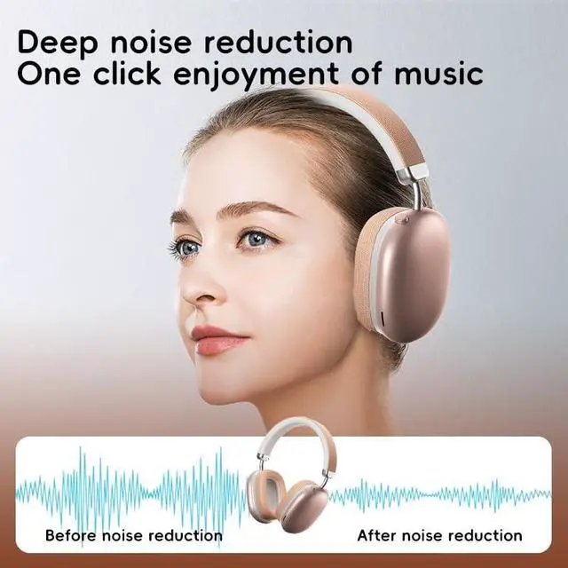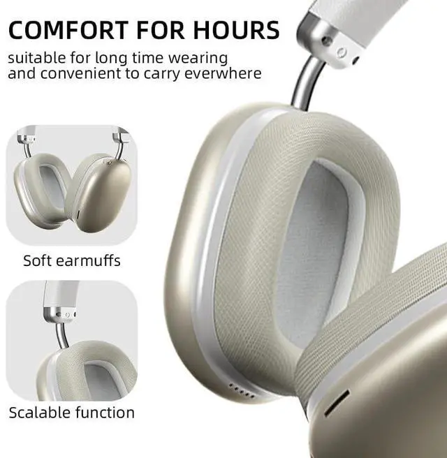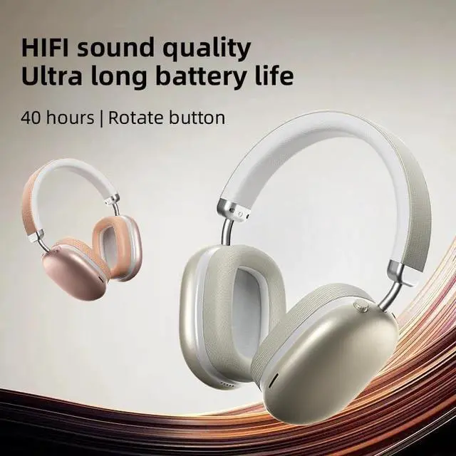 Experience premium audio comfort with these elegantly designed over-ear wireless headphones in sophisticated champagne gold. The luxuriously padded headband and plush ear cushions ensure lasting comfort during extended listening sessions. Featuring a sleek, minimalist design with chrome accents, these headphones blend style with functionality. The wireless capability gives you freedom of movement without compromising on sound quality. The sophisticated metallic finish and premium materials make these headphones a perfect companion for both casual listening and professional use. The ergonomic design with adjustable headband ensures a perfect fit for different head sizes, while the soft, breathable ear cushions provide excellent noise isolation.