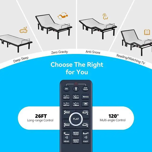 Intuitive Control at Your Fingertips:Experience effortless bed adjustments with our user-friendly remote featuring: Clearly labeled, buttons Ergonomic design for comfortable grip Simple one-touch operation Logical button layout for instant familiarity Perfect for use when you need quick, easy adjustments without fumbling.