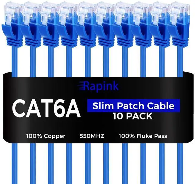 Save Space and TimeSlim cat6a patch cable is easier to route and saves valuable space in high density environments, such as data centers and telecommunications rooms. With thin ethernet cable, you can fit more cables in the same space, saving you the time and cost of expanding or replacing cable pathways. 10G speed via Gold plated pinsAll 8P8C of 30AWG pure copper cat 6a patch cable are golden plated to support better network connection up to 10G speed 550MHZ ethernet network. Upgrade and Clean Up RackGood size cat 6a ethernet cable for clean wire management install.