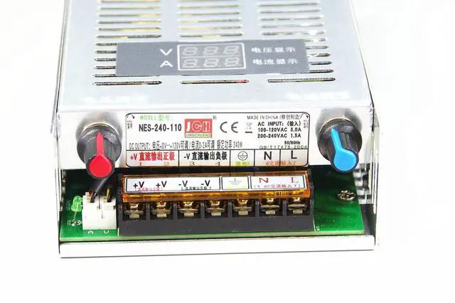 3. Pay attention to positive and negative, do not reverse. 4. If use motor, fan and other inductive load, please pay attention to the loads maximum starting current parameter. This parameter shall not be higher than the power supplys max. current. 5. Otherwise it may damage the power supply. Or allocate the soft starting protection circuit for the load to absorb the impact current. 6. Output voltage 0-100% continuously adjustable, with digital output display; output current is not adjustable, limit the highest value; so in the choice, please according to the actual needs. 7. The internal components of the power supply are the best quality, the factory has to undergo a rigorous test, non-general cheap power supply comparable. Can be used for high-end industrial equipment power supply.