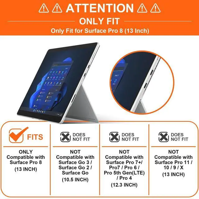 EXCLUSIVE FIT FOR SURFACE PRO 8 (13-INCH, 2021) Designed precisely for the Microsoft Surface Pro 8 (13-inch model, 2021 release only). This case offers a snug, secure fit that guarantees full access to all ports, buttons, cameras, and speakers.
