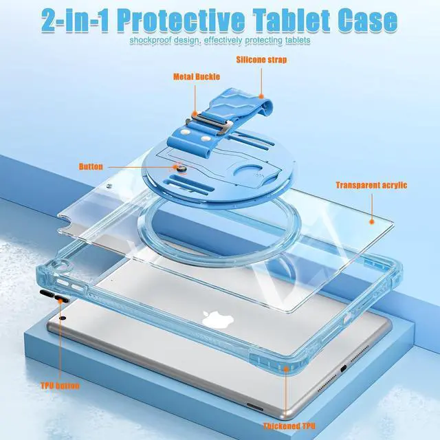 ^^ Convenient Hand Strap: Equipped with a hand strap for easy holding, the iDOMi tablet case allows you to carry your iPad securely and comfortably for hours on end.
