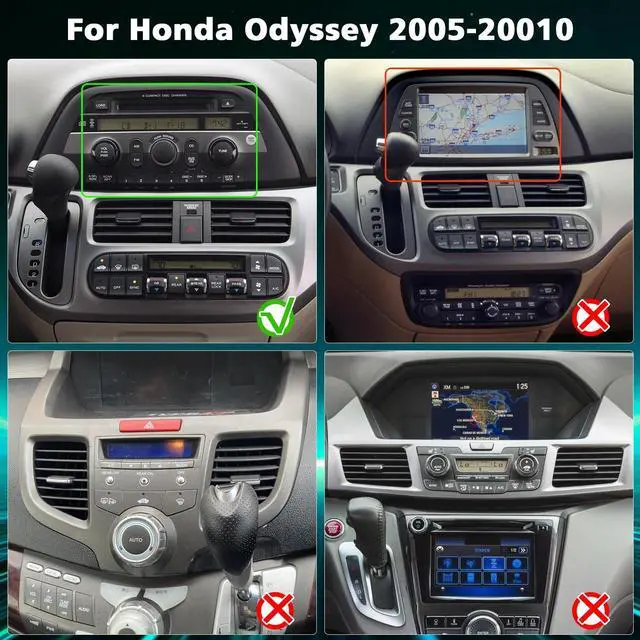 Vehicle CompatibilityOur car radio stereo is specifically designed for Honda Odyssey 2005-2010 with 10 inch touch screen radio, ensuring a fit and seamless integration with your vehicle, Please check the size of your car's radio before ordering. ^^ GPS Navigation WIFICar radio for Honda with w/android 14 operating system, along with 4GB of RAM and 64GB of ROM, this guarantees smooth operation and quicker responses. The car stereo has built-in Wi-Fi and GPS, supports online maps such as google maps, waze and here maps, shares hotspots through your phone, and can also download offline maps in the app store.