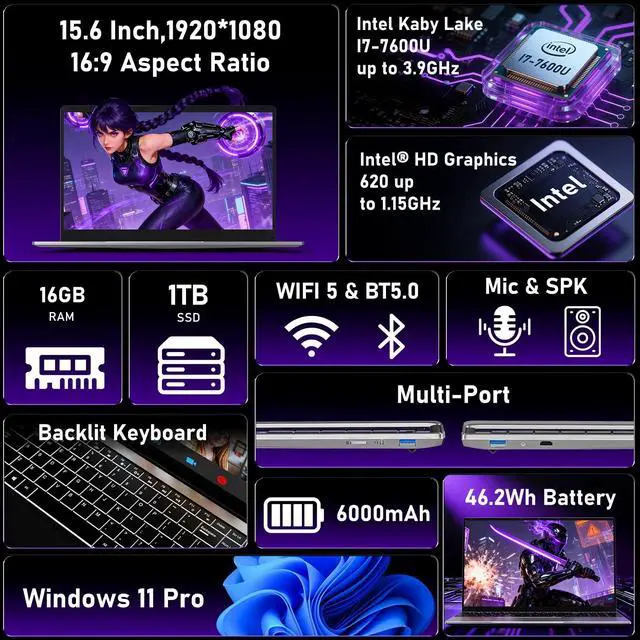 Peace of Mind with Long-Term Protection Shop with confidence thanks to a robust 2-Year Warranty and a generous 180-Day Free Return & Replacement policy. This reliable laptop computer is an investment backed by real security. ^^ Windows 11 Pro + Office 365 ^^ Ready to GoThis i7 gaming laptop comes with Windows 11 Pro and Office 365 pre-installed. Perfect for work, study, or gaming. This laptop for gaming is ready right out of the box. ^^ Powerful Core for Demanding Tasks Crush your daily workload with the Intel Core i7-7600U processor, reaching up to 3.9GH z.