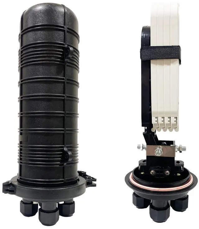 Introducing our Aerial & Direct Burial Fiber Optic Cable Enclosure with Fiber Splice Tray and Fusion Splice Sleeves (60mm). Designed for all-weather protection, this enclosure ensures uninterrupted signal transmission even in extreme conditions. With a post mount design for optimal signal distribution, it's fusion splicing ready, making network reliability a breeze. The vertical hot-melt sealing design guarantees strong and durable protection, accommodating various cable types for versatile networking setups. Plus, its user-friendly installation and expandable capacity ensure reliable longevity, making it perfect for public installations and long-term outdoor use.