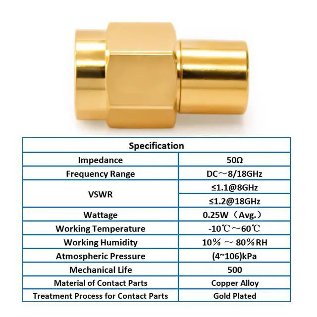 The TOJOIN 5 pcs SMA Male Load Connector Adapter /RF Termination Load DC to 18GHZ Coaxial SMA Terminator is an ideal choice for those who need to ensure reliable RF Test Equipment performance. This product features 50 Ohm impedance and 0.25W power, with a VSWR 1.3, and meets the MIL-C-39012/GB11313 Standard. Its durable and light weight construction is designed to provide long lasting use, making it suitable for various applications. This product is also easy to install and use, making it an ideal choice for your RF test equipment needs.