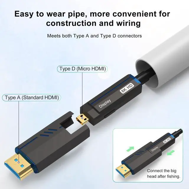 Ultimate Experience: The optical fiber complies with the HDMI 2.1 standard, supports 8K@60HZ, 4K@120HZ, and is backward compatible with 1440P and 1080P resolutions. Supports bandwidth up to 48Gbps and is backward compatible with HDMI 2.0 / 1.4 / 1.3 / 1.2 / 1.1 ^^ Detachable Connectors, Slim and
