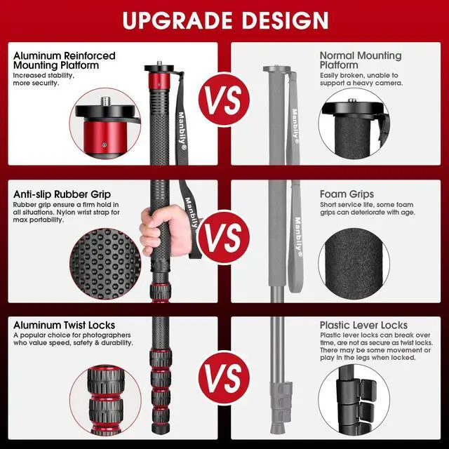 Monopod For Camera: The Manbily C-666L camera monopod weighs just 0.96 lb and folds down to 17", making the compact monopod an ideal companion for landscape, portrait, nature, travel & long exposure photography ^^