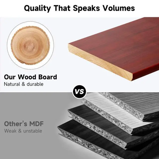 With an open-back design for easy cable management, it transforms cluttered desks into clean, productive workspacesperfect for home offices, gaming setups, or shared workspaces. ^^ Strong & Stable DesignBuilt from high-quality wood and metal, this monitor stand features a thickened 20mm ( 0.79 inch) panel that provides robust support for loads up to 136kg (300lbs). Engineered for lasting stability, it offers secure and wobble-resistant support for your monitors. Additionally, the smooth rounded corner design ensures safe handling, preventing bumps or scratches during use. ^^ Ergonomic Design Monitor StandOur monitor stand is ergonomically engineered to lift your screen to the ideal viewing height, aligning with your natural eye level to promote healthy posture.