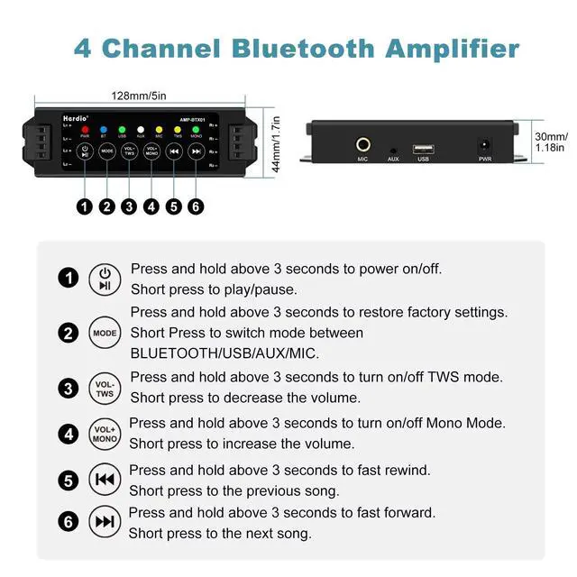 ^^ Multi Functional Amplifier: Mini Control Bluetooth Receiver with BluetoothTWSAUX, MIC, USB, MONO feturesconnect freely and enjoy music with ease. ^^ What's in the