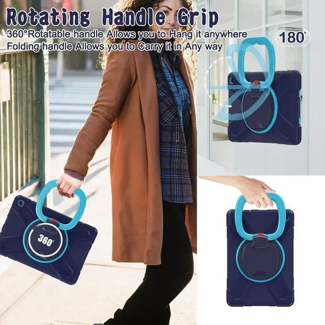 CompatibilityDesigned for Fire HD 10 13th Generation 10 inch 2023 Release. Designed for Fire HD 10 Kids 13th Generation 10 inch 2023 Release. Designed for Fire HD 10 Kids Pro 13th Generation 10 inch 2023 Release. Rugged Shockproof Case for Fire HD 10 2023 360 Rotating Kickstand can provide a stable support, infinite viewing angle and free your hands. The folding handle is perfect for slippery fingers to grip and carry. HIGHLIGHTSEasy for life on the goThe folding handle is perfect for slippery fingers to grip and carry. The folded handle will not make the whole case too bulky to put in a backpack of the usual size.