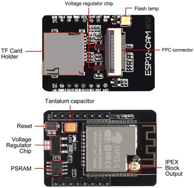 It is an ultra-small 802.11 b/g/n Wi-Fi + BT/BLE SoC module. ^^ The esp32 kit module can work independently as the smallest system. ^^ Esp32 cam adopts Micro USB interface, convenient and reliable connection method, convenient to apply to various IoT hardware terminal occasions.